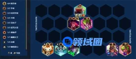羁绊:4复苏者 2学者 2时间学派 2术师 2花仙 2诅咒