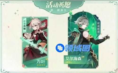 3.7下半卡池角色:枫原万叶+艾尔海森,武器池:裁叶萃光+苍古自由之誓