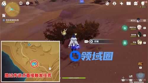 1、首先来到如图的铁穆山传送点位置,在这里将会触发【寻找奇怪的东西】。