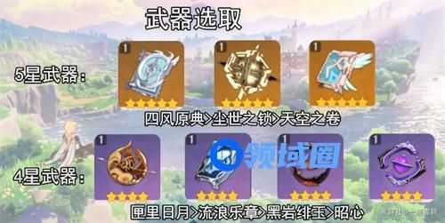 凝光的武器选取方面,当前版本有3把5星武器,分别是四风原典,天空之卷,和尘世之锁。