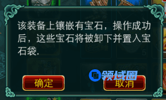 将您现有养成好的装备和需要养成的装备同时放在背包栏中。如装备上有镶嵌宝石,则系统会给予相应的提示,进行处理。