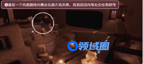 5、最后一个先祖剧场内舞台右前方机关旁,找到后回向导处交任务即可。