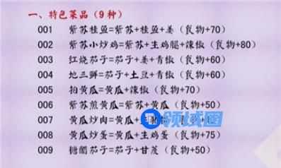 1.紫苏桂鱼=紫苏+桂鱼+姜 (食物+70)。
