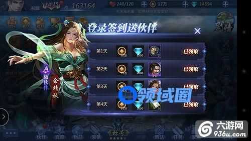 首先就是登录签到送伙伴啦,通过登录签到可以获得东伯烈、余靖秋、叶玫,简单轻松,而且余靖秋也是可以长期培养的伙伴哦