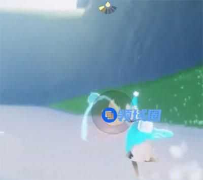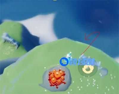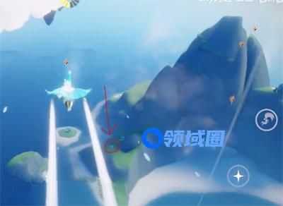这个就是来到这个山上面,然后在这个山腰下面,如图所示的区域,就可以看到一个先祖的橙色光芒。