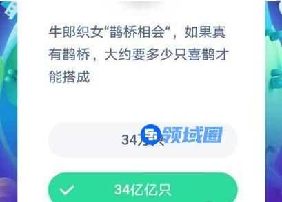 蚂蚁庄园今日8月25日题目是牛郎织女“鹊桥相会”,如果真有鹊桥,大约要多少只喜鹊才能搭成?今天是我们的传统节日七夕节,蚂蚁庄园的小课堂也出了一个跟节日有关的题目,该问题比较难,下面游戏宝小编就告诉大家正确答案,感兴趣的快来看看吧!