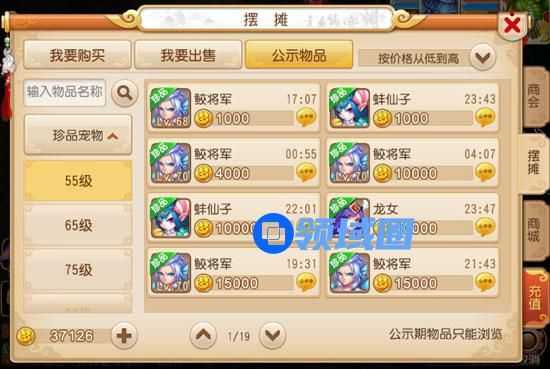 玩家在上架珍品时,可以指定任意价格。为避免盗号等不安全因素给玩家带来损失,珍品上架后,需要先进入1天的公示期,公示期结束后才能被其他玩家购买。玩家可以点击“公示物品”浏览公示期的商品。每件商品会显示公示期剩余时间。