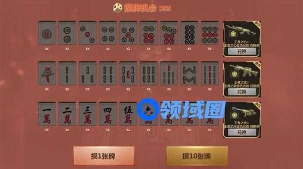 3.抽奖:每次仅可选择一个奖池进行摸牌抽奖,每次抽奖可以获得该奖池内的任一张麻将牌及随机道具奖励(不同奖池内的麻将牌和随机道具不同,可在道具宝箱中查看),麻将牌及奖励均可以重复获得;奖池可以任意切换;当某奖池中的麻将牌1-9全部获得,即可消耗1-9各一张牌兑换该奖池对应的“胡牌奖励”,“胡牌奖励”可以重复兑换;