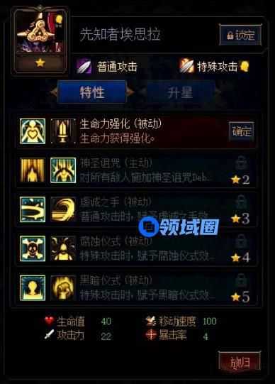 埃思拉是辅助卡,因此存活能力比较终于,加点推荐:生命力强化、神圣诅咒、虔诚之手、腐蚀仪式、黑暗仪式。