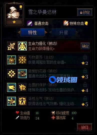 雪之华曼达琳一样是辅助卡,保队友的能力非常强,加点推荐:生命力强化、万物复苏、慈爱的花瓣、念兽的保护、活性念气。