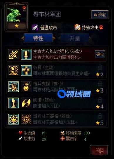 哥布林是我们属性的一张人口流卡牌,加点和上一次的区别不大,主要用于作为坦克吸收伤害,加点以增加人口为主和存活能力为主:生命力/攻击力强化、恢复、枪兵支援、凯诺、哥布林王高格。