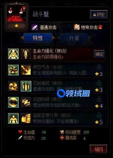 战斗蟹是我们在之前玩小人国时候遇到的一只怪物,同样是作为坦克控制卡牌,加点推荐:生命力强化、愤怒气泡、忍耐痛苦、奖励时间、超高密度外表。利用自己的存活能力多放主动控制技能制造给输出卡牌一个理想的环境。
