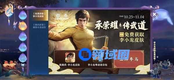 第四关挑战成功后,裴擒虎-李小龙皮肤奖励将于10月28日10:30开启领取,第五关挑战成功后,李小龙粤语语音包奖励将于11月1日10:30开启领取。