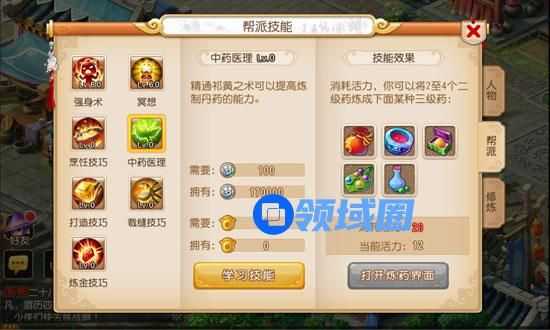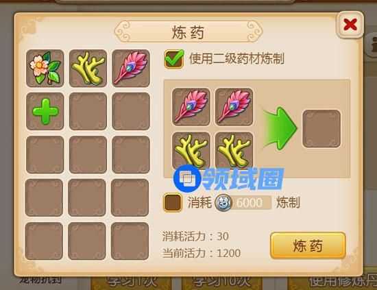 学习中药医理技能后可消耗一定活力将二级药炼成为三级药。