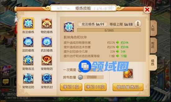 45/50/55/60/65级修炼上限分别为1/2/4/8/12 | |