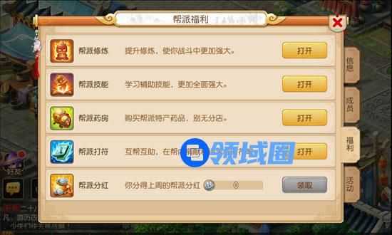 加入了帮派的玩家可以在帮派主界面的“福利”选项页看到帮派修炼栏目,可通过此处打开“帮派修炼”界面;也可以在主界面的技能按钮打开后切换到“帮派修炼”界面。