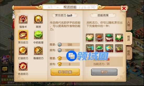烹饪技巧 | 传自商代名厨伊尹的技能,可以提高制作食物的能力。 |