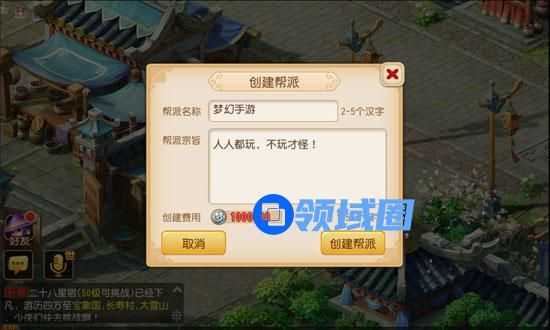 《梦幻西游》的帮派是通过玩家自行申请建立的,需要申请人的等级≥10,并且当前没有加入帮派,也没有申请加入其它帮派,满足条件的玩家可以在 长安城(186,15)找到“帮派主管”或者在帮派功能开启后在主界面找到“帮派”功能按钮打开“加入帮派”界面,申请建立帮派,需要缴纳100万银币作 为申请费。