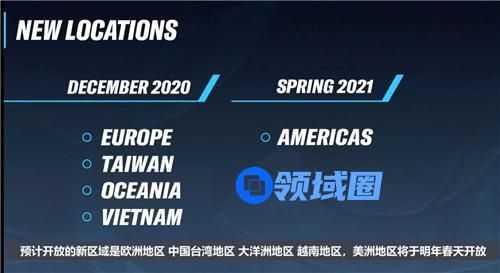首先10月27日开放性测试的地区名单为:韩国、日本、菲律宾、新加坡、马来西亚、印度尼西亚、泰国。拳头官方也表示,游戏将在【12月首周】起,逐步开启全球公测,预计开放的新区域有:欧洲、中国台湾、大洋洲、越南、 中东、北非、俄罗斯、土耳其。美洲将在 2021年春季上线。