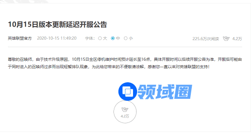 英雄联盟维护10月15到几点结束公告2020?