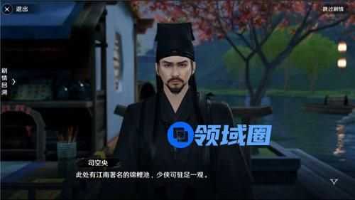 这是作为奇遇引导任务而出现的。如果玩过端游相信对本任务npc司空央相当眼熟,自从给帝王州盟主叶知秋算了个天煞孤星的命格后就消失在端游剧情中的他在手游剧情里再度登场。此时的他神神叨叨的出现在主角面前,一句“少侠慢行,此处锦鲤池可驻足一观”画面淡入,带领你进入了剧情位面。
