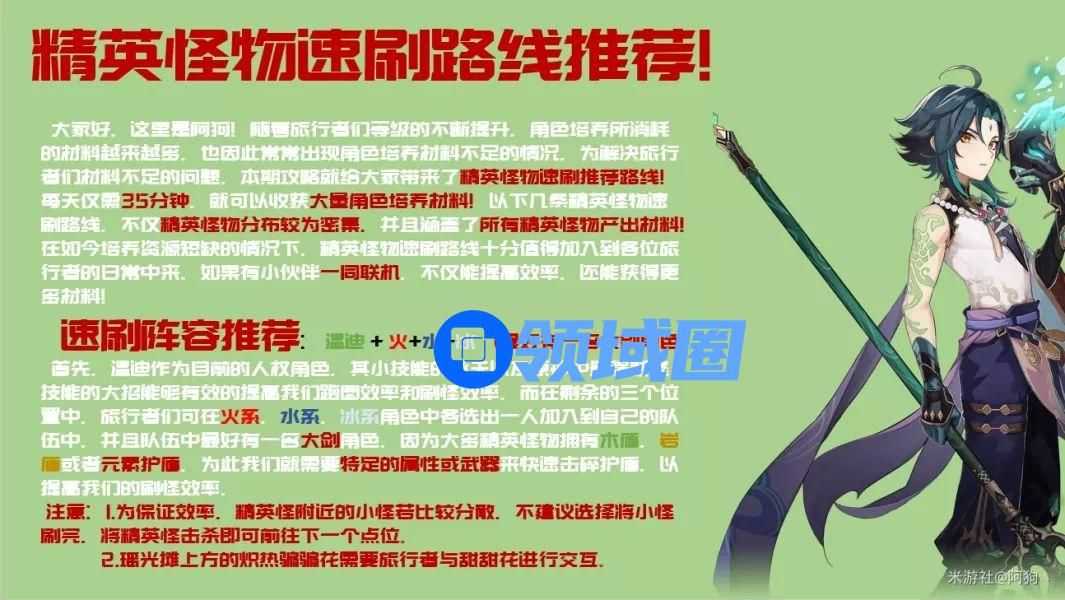 随着旅行者们等级的不断提升,角色培养所消耗的材料越来越多,也因此常常出现角色培养材料不足的情况,为解决旅行者们材料不足的问题,本期攻略就给他家带来了精英怪物速刷推荐路线!每天仅需35分钟,就可以收获大量角色培养素材!