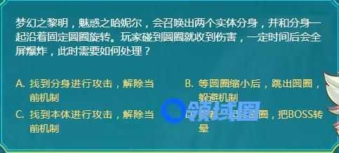 梦幻之黎明,魅惑之哈妮尔,会召唤出两个实体分身,并和分身一起沿着固定圆圈旋转。玩家碰到圆圈就收到伤害,一定时间后会全屏爆炸,此时需要如何处理?下面游戏宝小编为您带来正确答案。