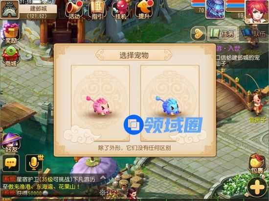 当你升级到3级的时候,宠物仙子会给你两只可爱的小野猪让你选择,当你选择一只小野猪后,宠物系统就会开启,从此你就可以带着自己的召唤兽闯荡三界啦!