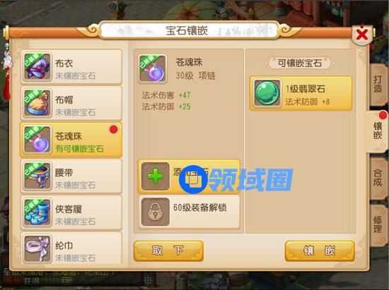 镶嵌宝石能让你的装备更为强大,不同部位的装备可以镶嵌不同类型的宝石。当你的装备达到30级之后,可以给你的装备镶嵌第一颗宝石;当你的装备达到60级的时候,可以镶嵌第二颗宝石;高等级的装备可以镶嵌更高级的宝石。