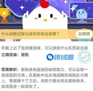 今天蚂蚁庄园又有了一个新问题,衣服上沾了油渍难洗掉涂抹什么去除呢?相信大部分的用户可能还不知道这个问题的答案,游戏宝小编今天就告诉大家这个问题的答案,快来丰富自己的知识面吧。