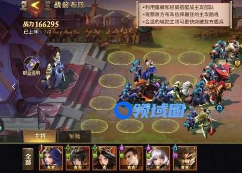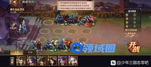 玩家们只要将刘备丶赵云丶董卓丶孟获这四个武将按顺序放在第一排,然后张辽放在二排,甄姬以及大乔则是放在最后一排进行作战。这样的话直接进行正面对战的一个打法,后排有谋士以及大乔的辅助作战可以轻松的取得游戏的胜利。