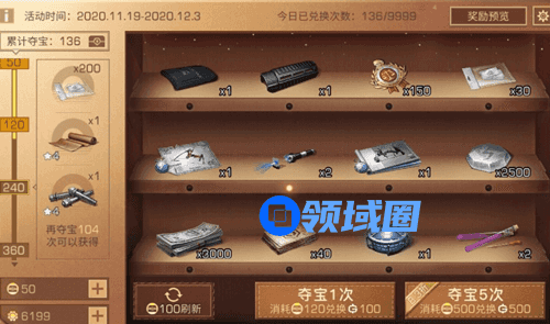 幸运夺宝:活动期间,消耗夺宝幸运币可兑换100新币并获赠1次夺宝机会,有机会获取黑狮号自选礼包、炫彩兔兔礼盒、珍稀武器装备配方等道具。