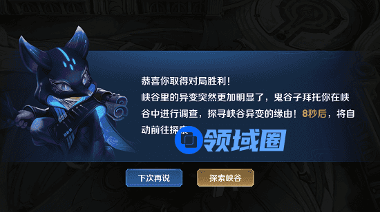 完成攻略:赢得一场对局(匹配、排位、巅峰或峡谷娱乐地图),然后进入探索阶段,前往玩家进去后就走主宰坑,会触发剧情对话,与“主宰”交流,对话全部完成就好。右上角有任务提示,也就是去主宰坑看看,鬼谷子应该会在那儿,这个任务进度变成1/1就代表完成了。