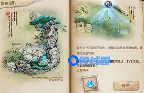 然后根据任务的指引,通过玄微罗盘的指针,找到峡谷中的异常点,只需要找到3处。