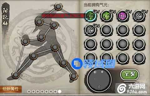 游戏中的每个阶段的经脉都有好几个穴位,多余的元气可以拿来升级穴位,但是40之前不建议大家升级。