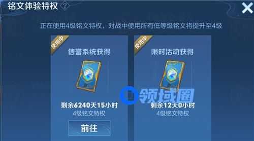 1、3级铭文体验特权