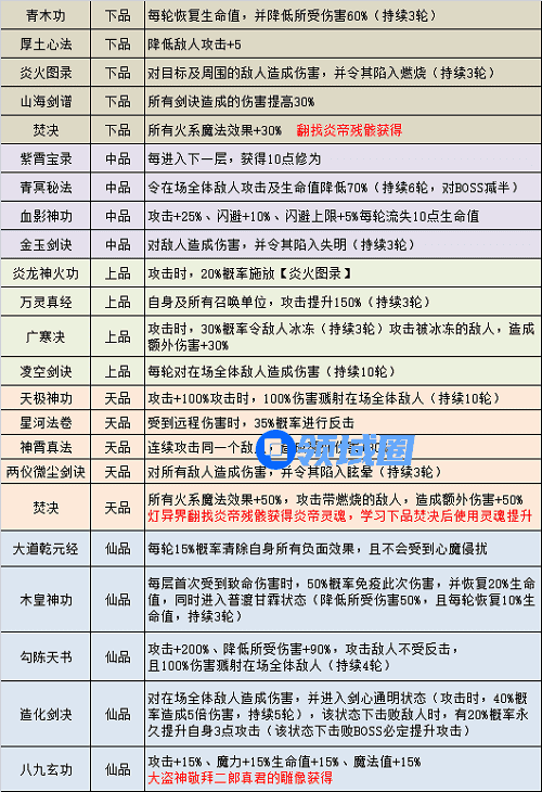 功法同样分为 下品 - 中品 - 上品 - 天品 - 仙品