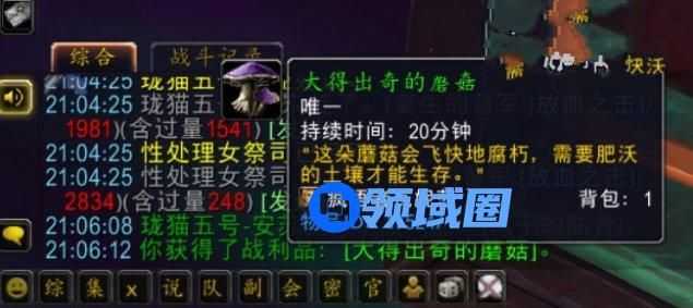 我们在炽蓝仙野这个地图里面任何的怪物都有几率掉落这个大得出奇的蘑菇。