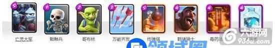 炸弹塔可以防御一切地面单位,哪怕是进击的皮卡超人或石头人;哥布林既能消耗地方塔血量,又能用来洗牌,最重要的是可以用来抵挡王子、巨人、皮卡超人、石头人;骷髅兵可以用来抵挡王子、小皮卡、野猪骑士,而且还能洗牌;亡灵大军可以抵挡一些血量较高的兵种,还可以防空。