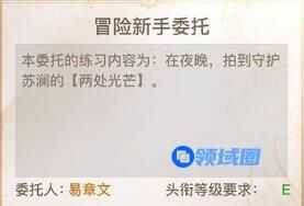 天谕手游守护苏澜的光是冒险新手委托任务之一,玩家需要拍到守护苏澜的【两处光芒】,那么天谕手游守护苏澜的光怎么做?游戏宝小编为您带来天谕手游守护苏澜的光完成攻略。