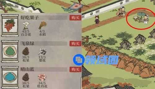 就是玩家在图中的这个早餐摊子,然后就可以来进行兑换这个好吃果子了,许多玩家以为是购买的其实不是,需要玩家使用五个百合花加上3个睡到获取,其中百合花容易得到,而水稻就是采集稻田然后就可以得到。