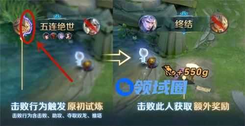 首先原初印记在敌方英雄获得【击败】、【助攻】、【夺取双龙】、【推塔】这种战绩后,会在【荣耀播报】的头像图标上显示原初印记,比如上图所示的张良,在获得五连绝世后会获得4级的原初印记,后续铠爹将其击杀就会有额外的金币奖励。