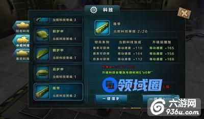 关于《3D坦克争霸》科技升级的介绍到这里就告一段落,在升级科技的还有一种部件没有给大家介绍后护甲。因为在游戏中很少敌人能够从背后进行攻击,在攻击的同时,也就意味着自己的暴露,等待他的只有灭亡。在游戏中升级何种部件完全依靠个人喜欢,也可以单一升级一种科技,在这里还是建议大家均衡发展,这样才可以研发下一个等级的新型坦克。