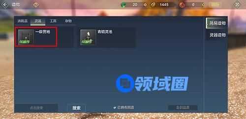 选择灵器,然后就可以制作这个营地,这个就是相当于篝火了,可以进行烹饪和烤火休息。需要消耗10个木头和10个石头,比较容易收集,重新建造然后就可以进行摆放了。