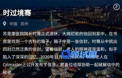 苏里康医院院长时骞正式退休,大病初愈的他回到家中,在书房里找到一个古朴的箱子,箱子中是一沓信封,时骞从中挑出四封已然泛黄的信封,望着信封,老人的眼神逐渐温和,似乎陷入了深深的回忆…2020年11月28日08:00,时骞老人在Crimaster上公开发布了信息,愿各位侦探协助一起破解信中的秘密…