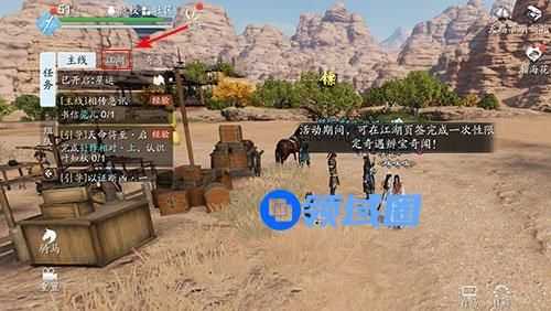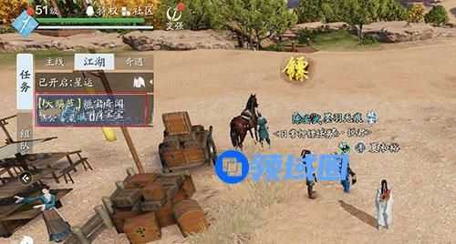 这个其实非常简单就能找到,就是玩家仔细的观察任务栏的这一个页面,可以看到,上面有主线、江湖、奇遇,其中江湖页签就是中间这一个,具体如图所示。就是图中红色箭头所标注的地方。