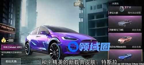 和平精英特斯拉是一辆继玛莎拉蒂后新曝光的轿车载具皮肤,所以很多玩家对这款特斯拉皮肤尤为关注,目前已知的是有黑色、白色、紫色三种颜色,下面就让小编带领大家去了解一下特斯拉轿车皮肤上线时间吧。