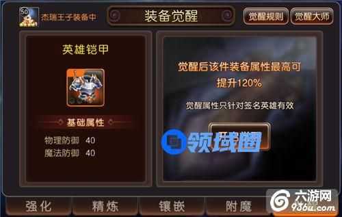 装备觉醒等级需达到40级开放此功能;紫色品质以上装备可以做觉醒。