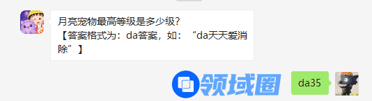 月亮宠物最高等级是多少级?【答案格式为:da答案,如:“da天天爱消除”】这是天天爱消除3月2日每日一题题目,游戏宝小编为您带来月亮宠物最高等级是多少级答案介绍。