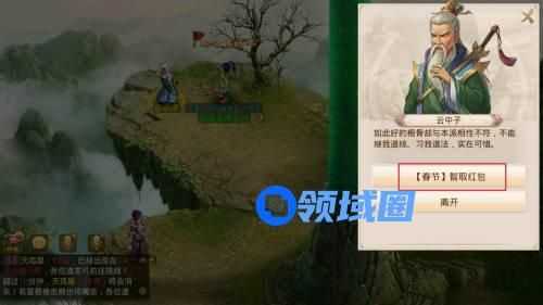 根据提示前往终南山 ,进入玉柱洞对话云中子领取红包